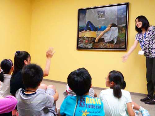 子どもたちをリードするのは、博士前期課程芸術専攻・芸術支援領域で、ギャラリートークの指導者としてトレーニングを受けた大学院生です。