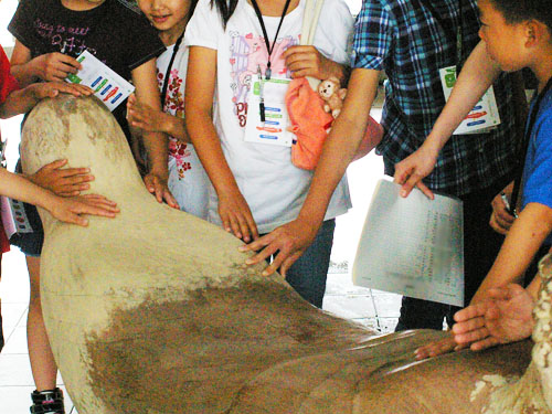 約20名の小学生が筑波大学につどい、芸術の大学生が作品を制作する現場を探検したり、ギャラリーに展示された作品を見て、一緒に考えたり話し合ったりしました。