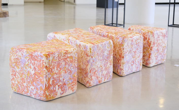 今年度は美術館での卒修了展に代えて、6A棟2階エントランスでも展示を行うことになりました。 こちらは主に学群4年生の卒業制作と小作品を展示しています。