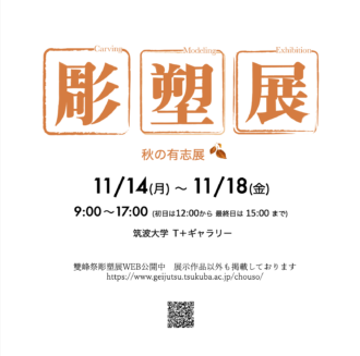 彫塑研究室有志8名の作品が出品されています。ぜひご覧くださいませ。