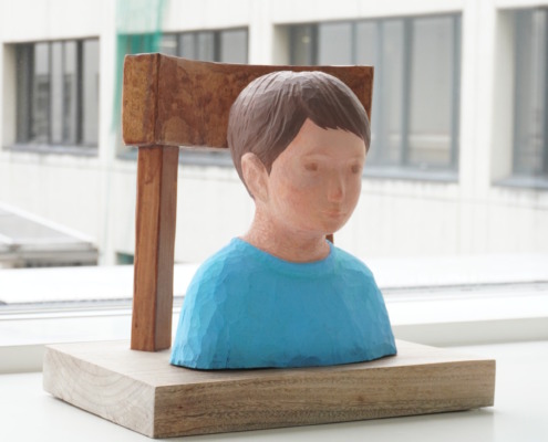 この作品のモデルは私のいとこです。彼がモデルの作品はこれで3つ目になります。この3つの作品を比較すると、できなかったこと、できるようになったこと、できなくなってしまったことが、それぞれの形態の中に点在しているように感じられます。彼の成長を形態化させていく過程で、自身も成長し、できるようになったことを嬉しく思う一方で、できなくなってしまったことに寂しさを覚える。それらを繰り返しながら、私はこれからも成長していくのだと思います。