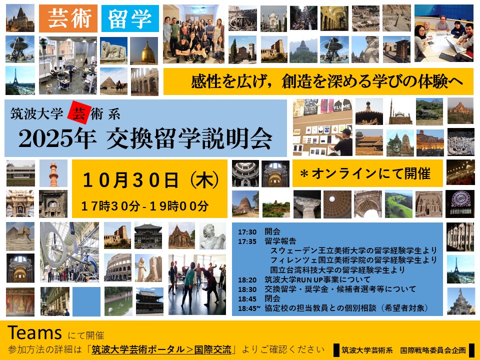 /カテゴリ: ニュース芸術系 交換留学説明会を以下の通り開催します。