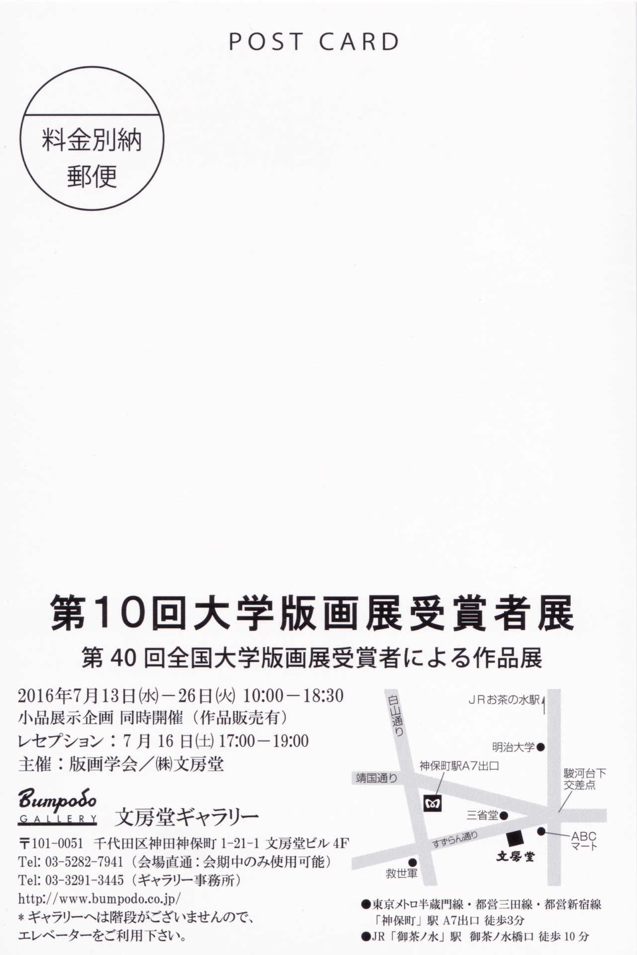版画を学ぶ学生からも卒業生1名、修了生2名の作品が展示される予定です。