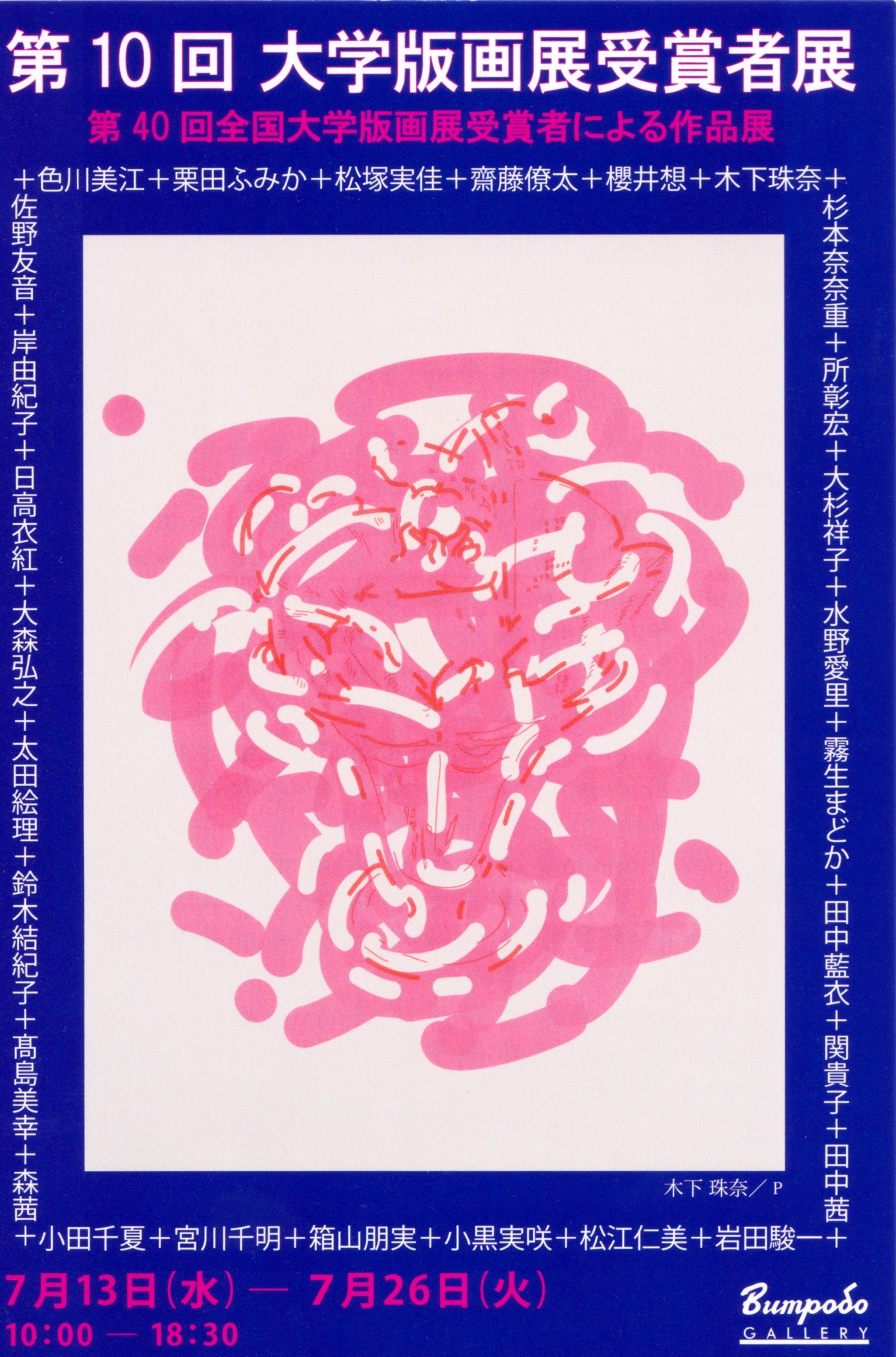 学群、博士前期、博士後期で版画を専攻する学生の展覧会を開催します。ヘルシンキ芸術大学美術アカデミーからの留学生2名も参加します。ご高覧頂ければ幸いです。