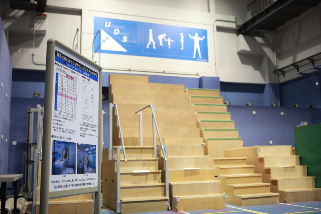 研究室では、普段意識しない事柄に対し街のバリアフリー調査を通してその困難さを感じ、結果をプレゼンする能力、デザインと実験により問題解決する能力を養います。実験では、整備に関わったユニバーサルデザイン実験棟(国立研究開発法人 建築研究所)を用います。