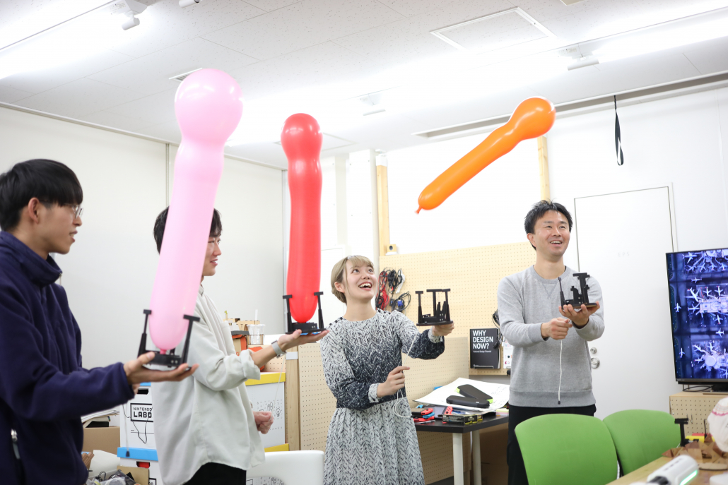 私たちは日常生活の中にある遊びや楽しいことを探究し、ユニークで新しいアイデアを生み出し、新しい体験を創り出すことを研究のテーマにしています。研究室のメンバーはいずれも技術の専門家ではありませんが、新しいアイデアをハード、ソフトのプロトタイピングツールを用いて素早くカタチにし、実際に体験できるようにしています。実験や展示を通して、その体験が利用者にとって快適でわかりやすいものであるか検証、改善し完成度を高めています。このようなプロセスは驚きや喜びを届けるエンターテインメントをデザインする上で重要なプロセスであると考えています。また、私たちの力をより高度で大きなプロジェクトにも反映させるべく、工学分野とのコラボレーションも積極的に行っています。