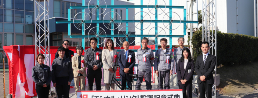 本学の芸術系と共英製鋼株式会社との共同研究の一環として、同社関東事業所(土浦市)のシンボルとなるモニュメント「エシカル・リンク」を東弘一郎助教(芸術系総合造形領域)が制作し、現地にて設置記念式典(除幕式)が開催されました。