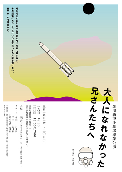 whowpadmin 2010-03-18 03:35:48 2010-03-18 10:19:10 大人になれなかった兄さんたちへ 劇団筑波小劇場卒業公演 2010年3月19日~2010年3月20日