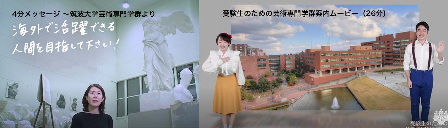 筑波大学芸術専門学群は、国立の総合大学の中に設置された芸術の専門教育機関です。最先端の多様な学問を学ぶことができる大学環境と、1学年100名の少人数に14領域の多彩な芸術の専門教育を提供できる利点を生かして、幅広い見識と豊かな創造力をそなえた芸術の専門家を育成しています。これまでに、美術家・デザイナー・研究者など芸術・デザイン分野で指導的役割を担う優れた卒業生が多数輩出し社会で活躍しています。