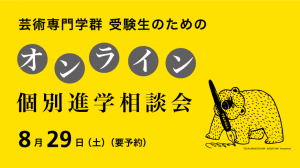 芸術専門学群ではパソコンやスマートフォンで簡単に参加できる進学相談会を実施します。芸術専門学群の入試、カリキュラム、学生生活などについて、個別に相談したい方はぜひお申込みください。
