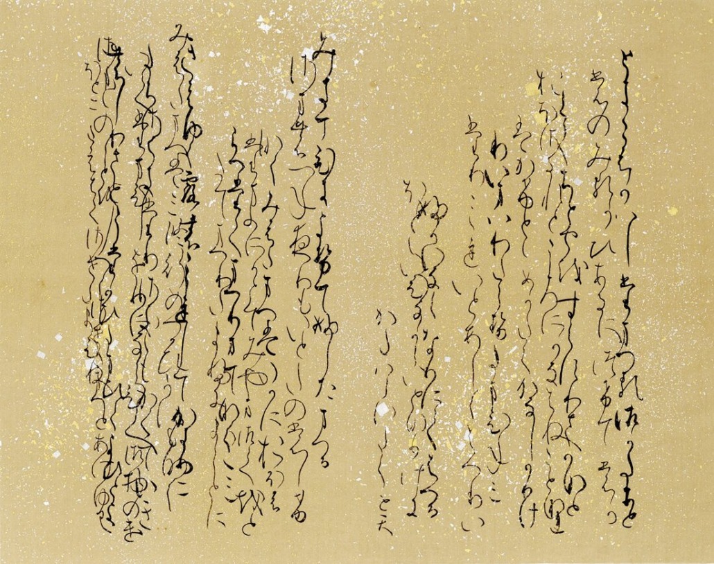 今回臨書したのは源氏物語絵巻詞書の「御法」の段の一部で、藤原伊房筆とされています。十一世紀以来の伝統を引き継ぐ、美しい連綿体で書きつづられており、行の重なりが特徴的です。