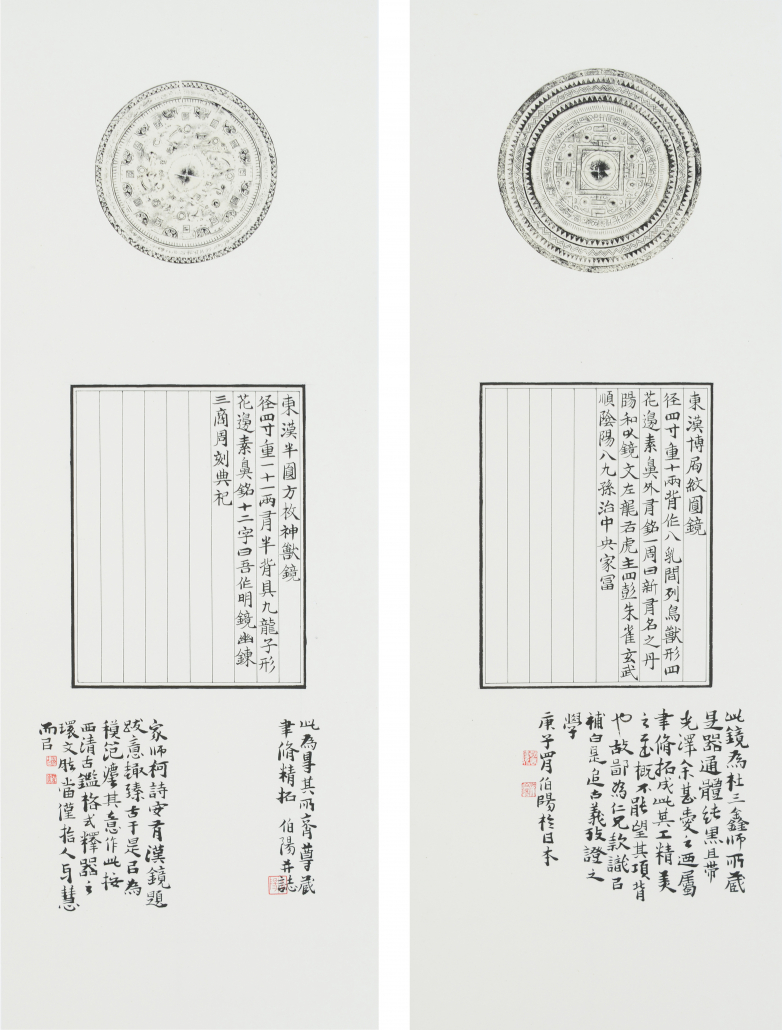 東漢博局紋圓鏡拓 東漢半圓神獸鏡拓