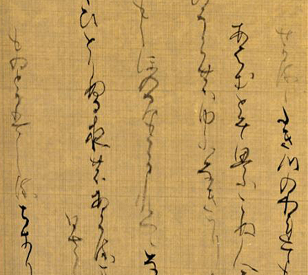 百人一首の中から恋の歌を31首選び、14枚の帖に仕立てました。 使用紙は雁皮の染め紙。全体の構成は、はじめに散し書きで余白をとり、中盤では密にし、さらに終盤で文字を小さく密にし、上部と行の余白に変化をつけ、最後に3行をまとめ、3行目に「り」一文字で締めてみました。 一枚一枚が同じようにならないよう構成に変化をつけながら、墨継ぎ(潤、渇)に気をつけ、全体が一つの流れになるようにまとめてみました。