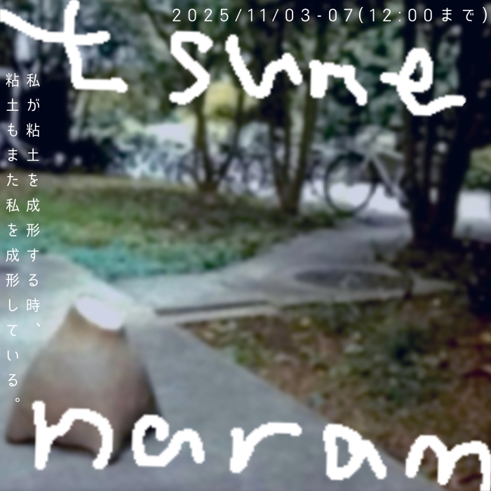 「tsune ranam」宮崎桜 11月4日(火)〜11月7日(金)2025年11月6日/カテゴリ: 展覧会情報/作成者: t-tasu 「tsune ranam」が開催されます。 会場:アートギャラリーT+ 会期:11月4日(火)〜11月7日(金) 出展者:宮崎桜 私が粘土を成形する時、粘土もまた私を成形している。 < https://www.geijutsu.tsukuba.ac.jp/t-tasu/wp-content/uploads/sites/56/image3.jpeg 700 700 t-tasu https://www.geijutsu.tsukuba.ac.jp/t-tasu/wp-content/uploads/sites/56/t-tasu_logo.png t-tasu2025-11-06 15:23:292025-11-06 15:27:53「tsune ranam」宮崎桜 11月4日(火)〜11月7日(金)