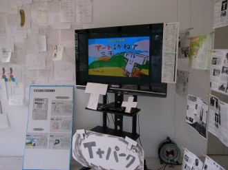 T+がテレビ局となって芸術専門学群やつくば市内のアート情報を発信。映像の展示やパフォーマンス。