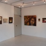 掌に納まりそうなサイズの箱たちが、ギャラリーの壁面に1本の横線を描いている。それぞれの箱の中には、それぞれに異なる世界。そんな展示空間に入った者たちは、作者の目線の高さに設置されたと思われる箱の中を1つ1つ、蟹のように横歩きをしながら眺めていた。