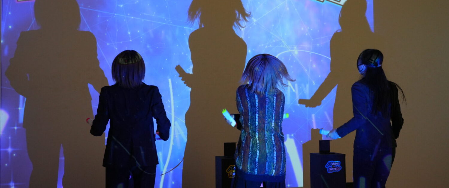 Nawa to Beatは、3人でなわとびを飛ぶことによりビートを奏でるインタラクティブ作品です。小学校で誰しもが経験するなわとびですが、「飛べなかった」「痛い」などの失敗経験から苦手意識を持つ人も多いです。そこで、もっと飛ぶ楽しさを味わえるものは作れ ないだろうかと考え、本作品の制作に至りました。3人の縄を飛ぶタイミングが合致することでクールなビートを鳴らすことができ、 曲が盛り上がっていきます。他者と呼吸を合わせながら演奏する感覚を楽しむ、セッションできる新しいなわとびの形を提案します。