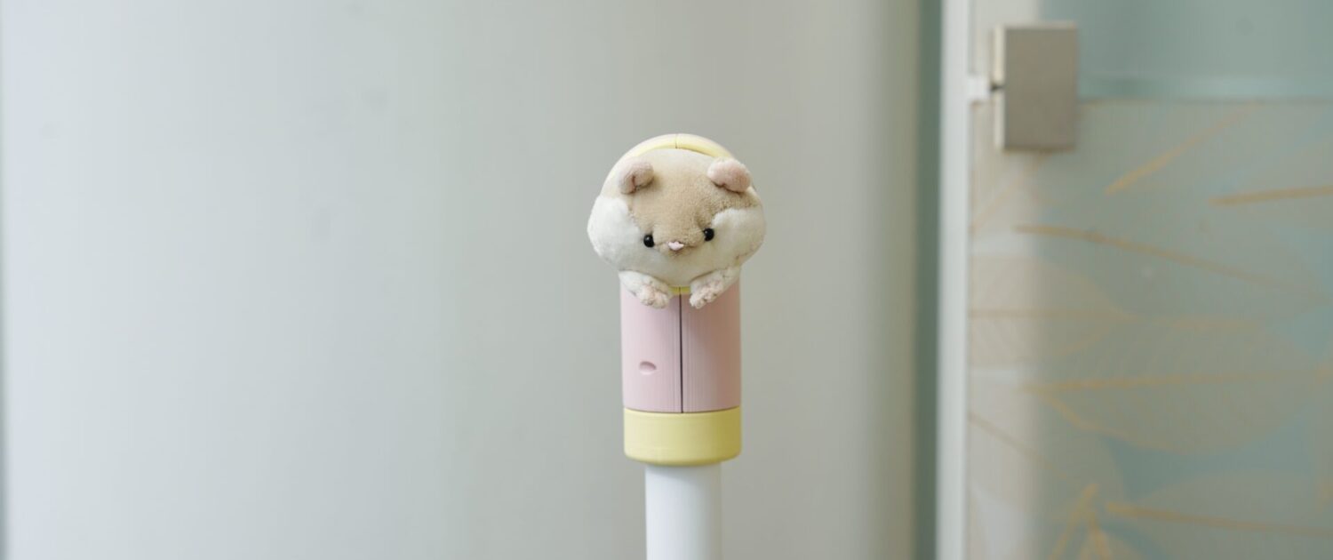 四点支持構造に、キャラクターの佇まい・控えめな応答・やわらかな触感を組み合わせることで、未使用時にも生活空間の中で自然に居場所を持つ、自立した存在としての杖を目指しました。
