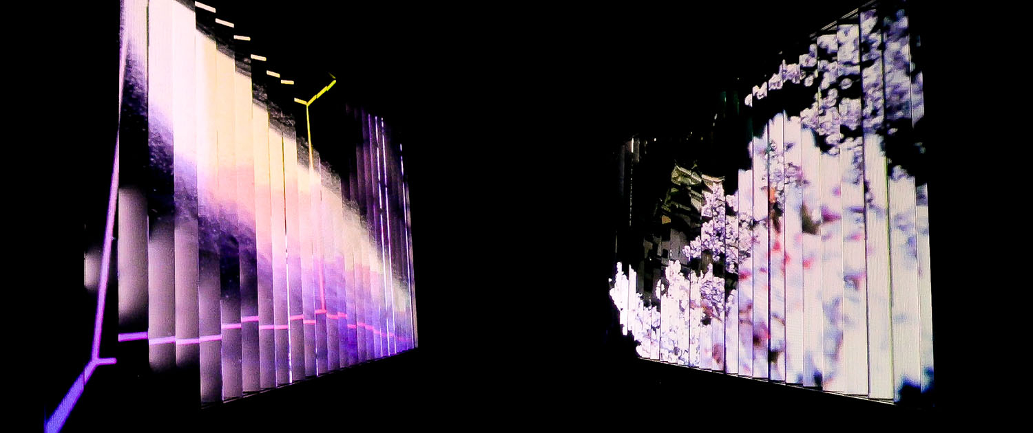 XYZRGB.exeは映画やアニメドラマなどの、映像作品に使われている色の種類や変化を感じる装置です。この作品では映像の色情報に注目し、色情報(RGB)を三次元の座標情報(XYZ)に変換することで、使用されている色の種類や変化を感じ取れるシステムを開発しました。このシステムと鑑賞位置に行って見え方が変わるトリックアートの手法を掛け合わせ、映像に使われている色の変化や動きをおもしろく鑑賞できる作品を制作しました。