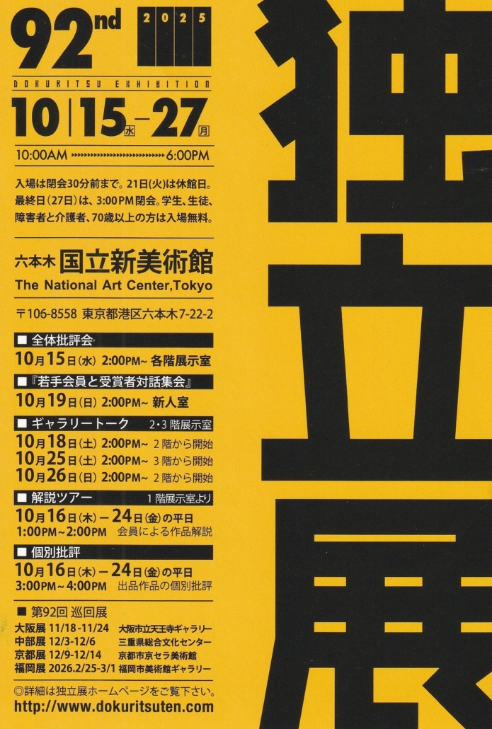 【入選報告】「第92回独立展」2025年10月15日(水)~10月27日(月)