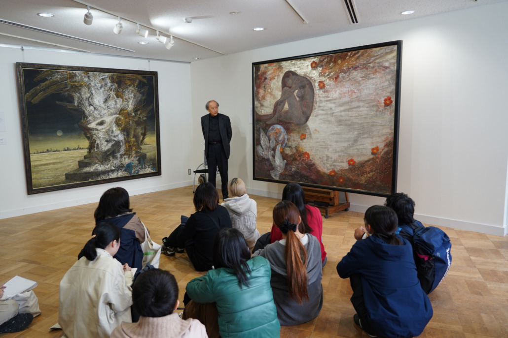 洋画・日本画の学生に向けて、筑波大学洋画領域・日本画領域の歴史や、ご自身の作品について、絵を描くということについてなど、多くのお話をいただきました。