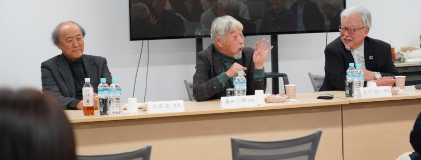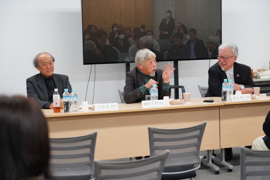 10月29日(水)には、玉川信一名誉教授(洋画)、藤田志朗名誉教授(日本画)、太田圭名誉教授(日本画)にお越しいただき、ギャラリートークとトークセッションを開催しました。