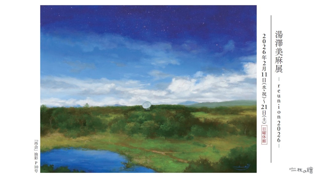 「湯澤美麻展-reunion2026-」2026年2月11日(水・祝)~2月21日(土)2026年2月2日/カテゴリ: イベント/作成者: geijutsu117芸術系湯澤美麻助教(洋画領域)の個展が開催されます。 会期:2026年2月11日(水・祝)~2月21日(土) 時間 : 11:00〜18:30 最終日16:00まで 日曜休廊 会場 : ギャラリー一枚の繪 ( 〒104-0061 東京都中央区銀座6-6-1 銀座風月堂ビル 3F) https://ichimainoe.co.jp/ https://www.geijutsu.tsukuba.ac.jp/youga/wp-content/uploads/sites/63/スクリーンショット-2026-01-19-175043.jpg 931 1656 geijutsu117 https://www.geijutsu.tsukuba.ac.jp/youga/wp-content/uploads/sites/63/yougalogo.png geijutsu1172026-02-02 17:00:462026-02-02 17:01:06「湯澤美麻展-reunion2026-」2026年2月11日(水・祝)~2月21日(土)