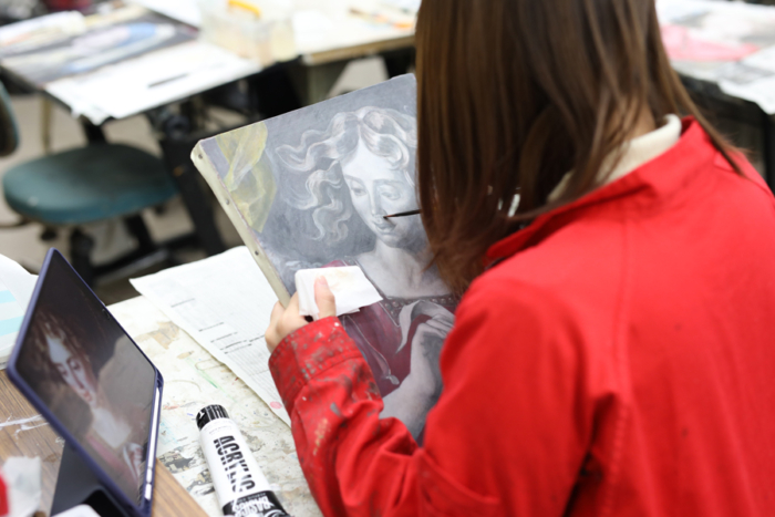学士課程カリキュラム 実技・演習:洋画技法演習 2019年6月5日/カテゴリ: ニュース /作成者: whowpadmin 洋画技法演習(内藤、全20週、3年次) アクリル絵具と油絵具による混合技法、並びにテンペラ絵具と油絵具による混合技法を用いた作品を制作し、描画に用いられる基底材、下地、顔料、画用液等といった材料について学びながら絵画の物理的構造に関する理解を深めていきます。 https://www.geijutsu.tsukuba.ac.jp/youga/wp-content/uploads/sites/63/H23_2_u01_yatagai-1.jpg 705 524 whowpadmin https://www.geijutsu.tsukuba.ac.jp/youga/wp-content/uploads/sites/63/yougalogo.png whowpadmin2019-06-05 14:40:032021-02-25 13:04:48学士課程カリキュラム 実技・演習:洋画技法演習