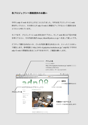 今年はその各プロジェクトのweb係が、ADPのwebに情報をアップする
