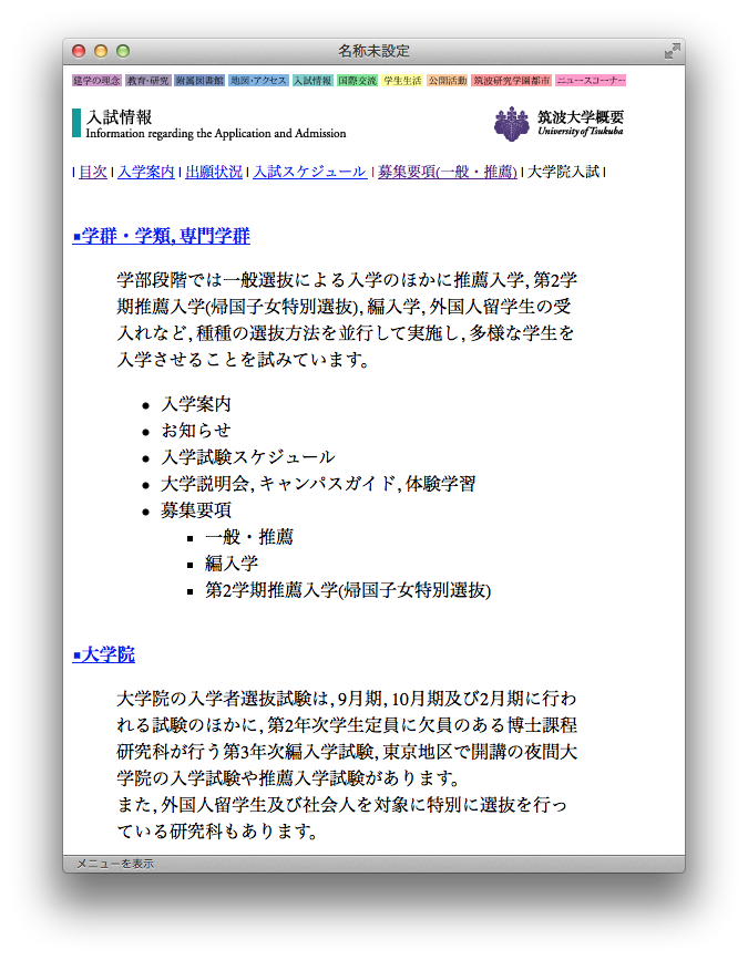 トップページ | 学長 | 図書館 | アクセス | 入試 | 国際交流 | 学生生活 | 広報 | 研究学園都市 | ニュース