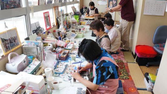 Locals are producing their works in the hall of a primary school that was devastated by the tsunami.