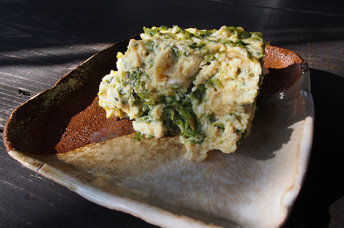 海の岩場に生えているふのりがいっぱいの、ふわふわ卵焼き。