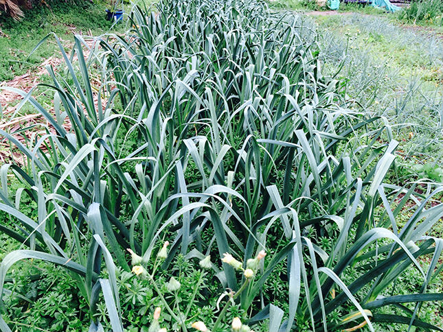 笠利の蘇鉄畑でらっきょうを育てていた栄さん。